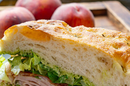 Vasariškas sumuštinis su rančo pesto, kalakutiena, šonine, avokadu, salotomis ir havarti. Štai…